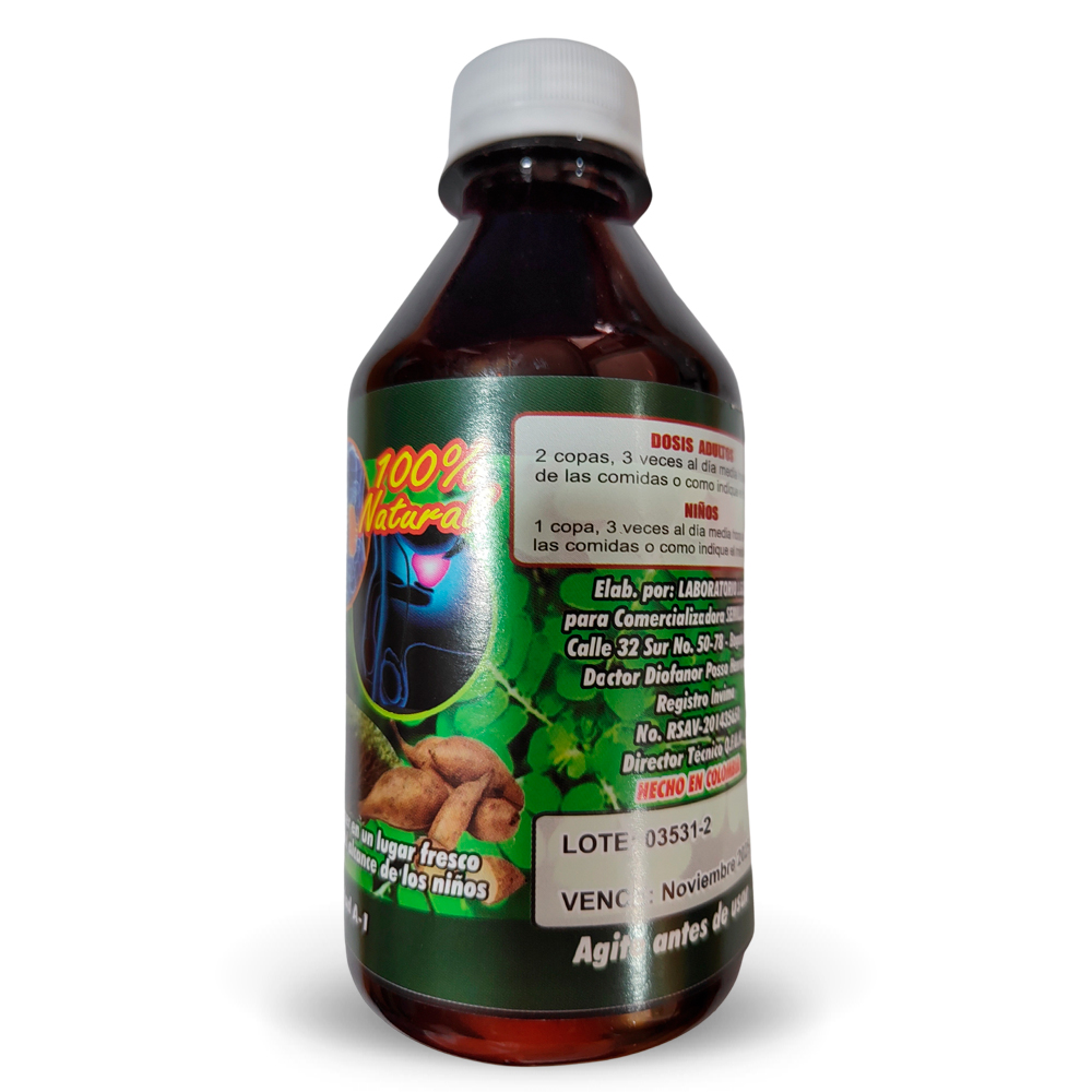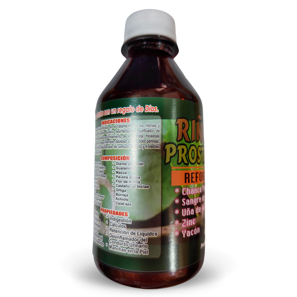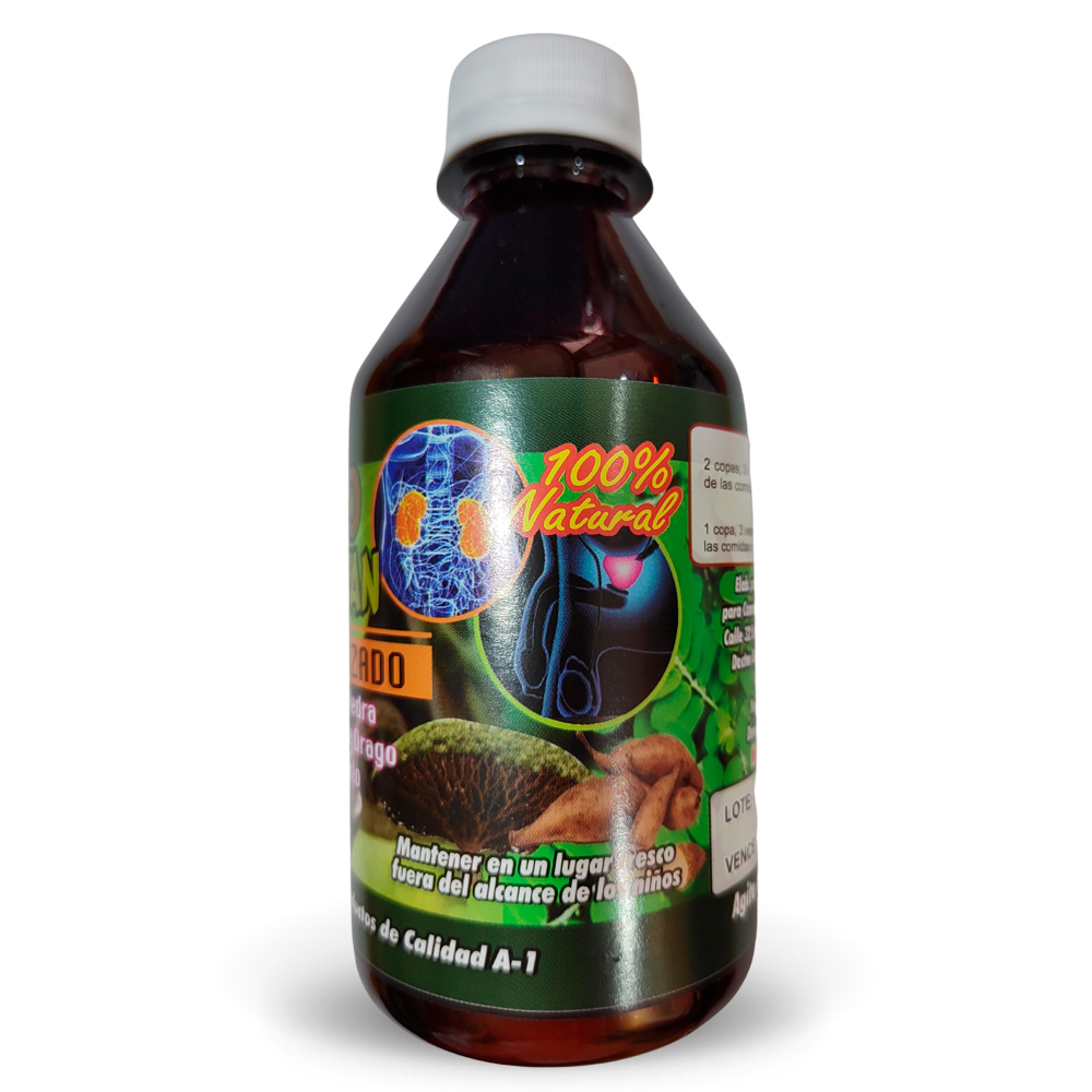 Contiene uña de gato, cola de caballo, chancapiedra, sangre de dragón, nogal, chacón, alcachofa, casco de vaca, zarzaparrilla, pelo de maíz, diente de león, gualanday, maca, flor de arena, castaño de indias, ortiga, borraja, achiote y calabaza.